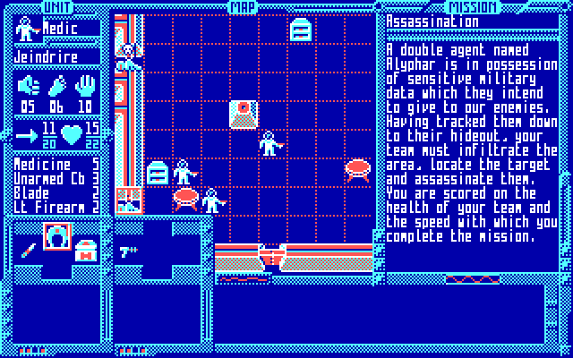 After your first game, you have the opportunity to choose the mission and the team for your next game. The default choice is one of each unit type, but you can choose a mission and tailor your team to perform best at it, e.g. more soldiers for an Annihilation mission. Or you can set everything to Random for a more interesting challenge!